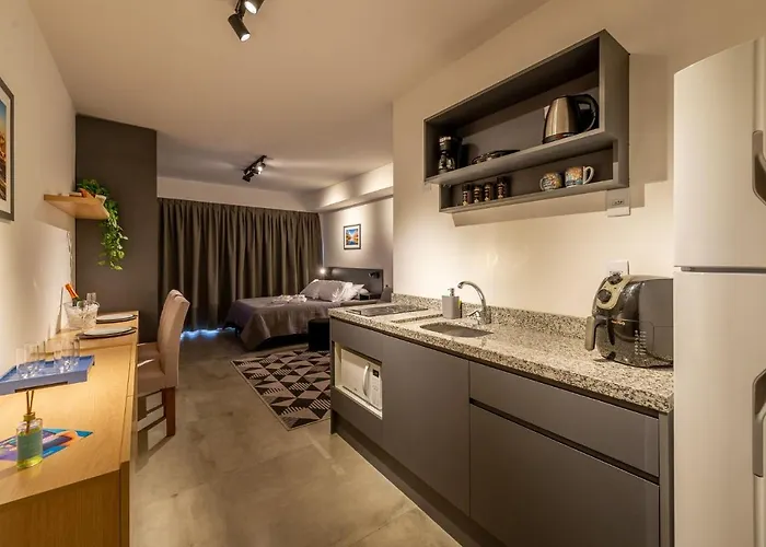 Eine Küche verfügt über einen Kühlschrank und einen Toaster, was den Aufenthalt angenehm macht. Sie können zum Flughafen Salgado Filho in 15 Autominuten gelangen. Die Gäste sind eingeladen, auf einer Gemeinschaftslounge zu entspannen.